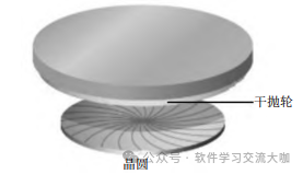 抛光主轴带动合成毛毡抛光轮(无磨粒脱落,无加工痕迹)移动到晶圆上方,下降覆盖表面;
