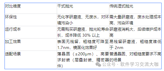 划重点:干式抛光的核心使命是 “消除变质层 + 降低粗糙度 + 释放应力”,相当于给减薄后的晶圆做 “镜面化精加工”,而且全程不用水和化学研磨液,环保又降低运行成本!