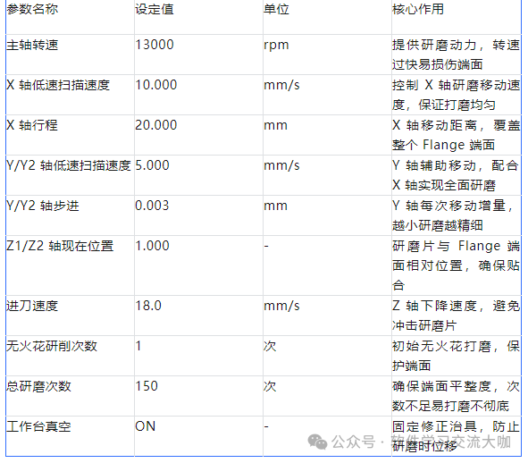 步骤 2:整面研磨参数设置(关键!直接影响修正精度)