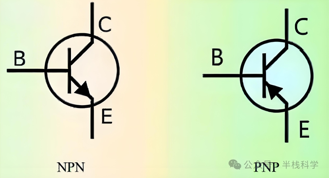 掺杂类型的半导体材料组成形成两个PN结,根据掺杂类型的不同,三极管分为NPN型和PNP型。