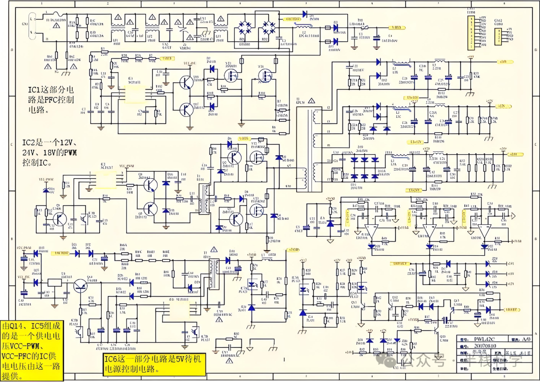 这是一张LCD 42C电源原理图,由LM339组成的电路是一组过流保护电路;由ZD3、ZD4、ZD5组成的是一组过压保护电路;由D34、D35组成的是一组欠压保护电路。