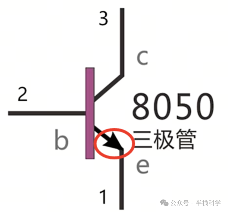 上图所示为NPN型三极管的驱动电路,三极管的左边是基极,带箭头的是发射极,剩下的是集电极 (记住带箭头的是发射极就行了) 。