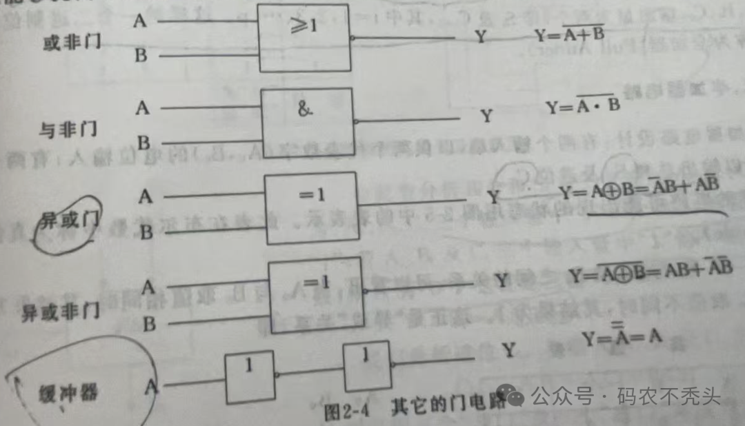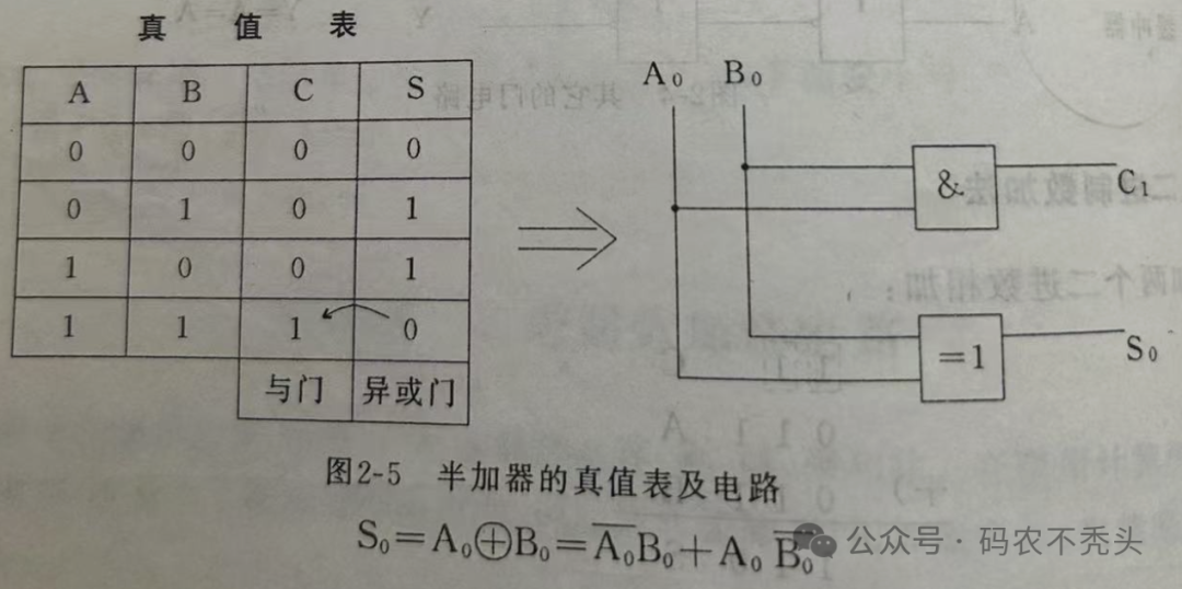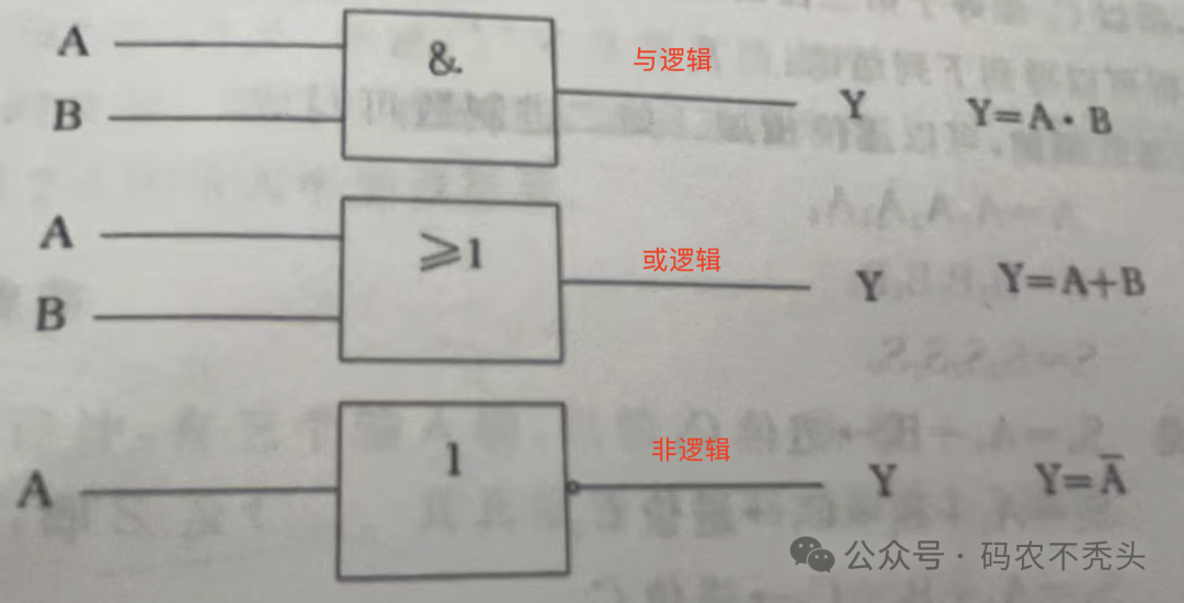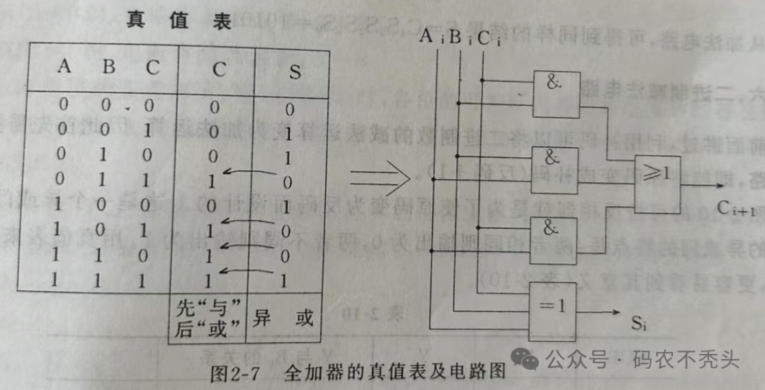 MOS管相比于晶体管静态功耗更低,晶体管导通时存在较大基极电流损耗;而且MOS管开关速度更快,适合高频应用;晶体管在高频下易受限制,因此MOS管也应用更广泛,常用于数字电路、高频开关、功率电子(如CPU、电源管理、逆变器)等。大家都知道寄存器中的运算器是可以进行算数运算和逻辑运算的,而这些进行运算的部件就是由各种各样的晶体管组成,先来看一下这些运算的电路基本原理。所有复杂的电路都是在简单电路基础上发展出来的,如下图所示,是一些常见的复杂的逻辑电路。更多的逻辑电路,感兴趣的可以自行推导一下,依据交换律、结合律等。最后一个缓冲器,实际上是2个非门串联,以达到改变输出电阻的目的。如A点左边电路的输出电阻很高,经过这个缓冲门之后,在Y点处的输出电阻就可以变得低需哦多倍,这就能够提高负载的能力。有了以上的基本电路之后,我们接下来看一下,如何用这些基本电路实现二进制的加法如上图所示,二进制加法器其实是一个与门+异或门组成,AB为输入值,S为输出和,C为相加进位。聪明的你,不难发现,当AB取值相同时,其结果S为0,当AB取值不同时,其结果S为1。这个时候聪明的你肯定想,上边的电路只能实现2个数相加,那一般计算当中还有低位的进位呢,该怎么处理?这个时候全加器就被发明出来了全加器是多个与或非门+异或门组成,ABC为输入值,S为输出和,C为相加进位因为ABC之间是异或关系,所以ABC三个输入量中”1“的个数为奇数,则S为1有加法器必有减法器,学过计算机基础的应该都知道,减法其实是利于二进制的补码将减法转为加法进行,因此减法器也是类似,就不深入展开了,还有编码器、译码器等,都是由基本电路设计而来,就不一一细述了。由上边的逻辑电路可以看出,电路里的开闭,有时候是高低电位,其实就是二进制的01,而PN结做的晶体管就是逻辑电路里的元器件,大量的晶体管集成设计,就是我们常说的芯片,现在最先进的晶体管的尺寸已经做到纳米级别,一块单晶硅可以刻出数以亿计的晶体管。对芯片半导体感兴趣的