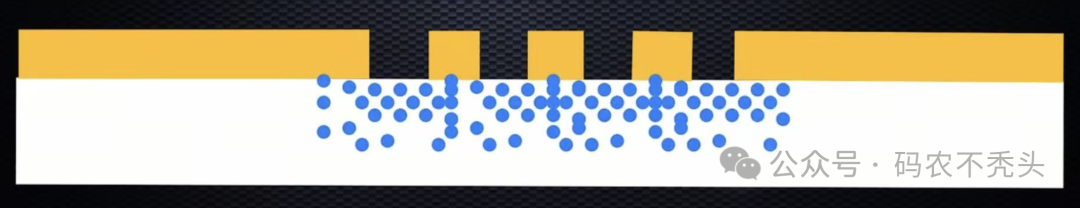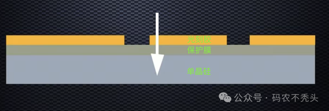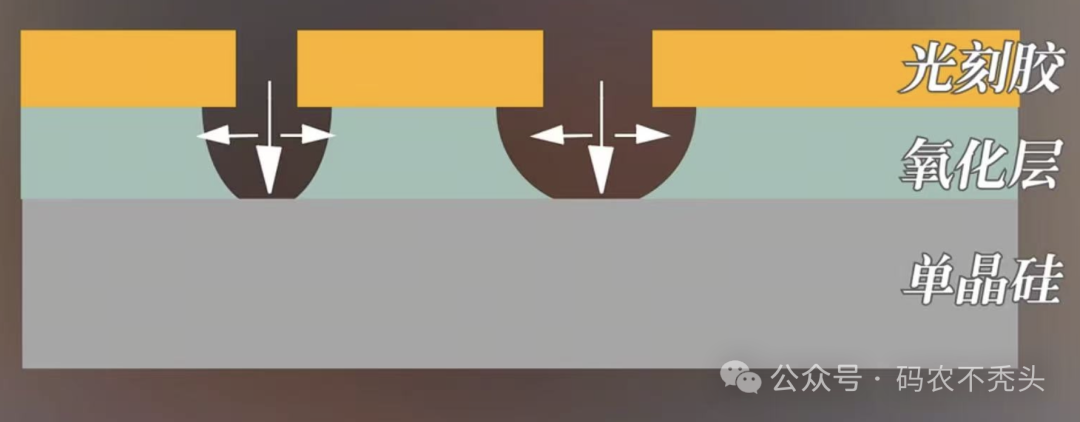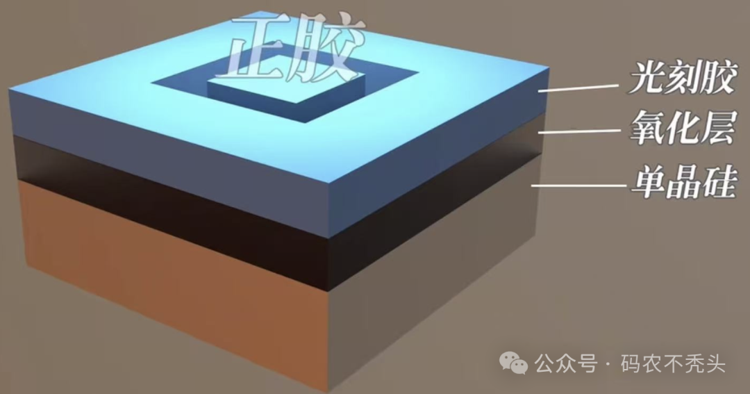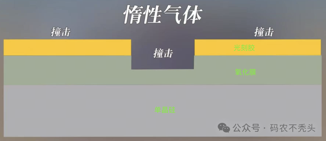 这个牛逼的芯片,到底是怎么做的,我们今天就大白话介绍一下基本原理,我把制造芯片的过程抽象成8个核心步骤,如下:首先,我们需要一个纯度非常高的晶圆硅,多纯呢?99.999999999%的纯度,不用数了,一共11个9,我们IT界常讲的稳定性一般都说能保障3个9,最多5个9,大家都觉得难度很大了,但为了高性能芯片,科学家确实将硅的纯度做到这么牛叉。11个9是百亿数量级,全世界现在有80.62亿人,就相当于全世界所有人当中,最多能出现一个智障,其他都是正常人。纯度如此高的晶圆,很容易被污染,因此单晶硅有了之后,首先要对其氧化,使其表面形成一层二氧化硅的氧化膜,一个是保护单晶硅被污染,另一方面二氧化硅,稳定性很高,可以充当绝缘层。光刻胶是是芯片制造中非常重要部分,芯片的整个制造过程中都离不开它,芯片光刻的凹凸不平的复杂结构,都跟它有关系,我们常听到的光刻,其实刻的不是硅片,而是光刻胶。在氧化后晶圆的表面涂一层1μm左右的光刻胶,1μm的光刻胶涂的工艺并不是我们想的用刷子刷或者用气枪喷涂,而是用离心的办法,在晶圆的中心涂一小滴光刻胶,通过对晶圆高速旋转,把光刻胶甩出去,这样会涂的非常均匀。光刻胶的质量要求也非常高,目前主要由日本的公司供应。光刻其实不是并不是用光来刻,我们中学时期学光学都知道,光主要是用来成像的,在光刻中也是如此,就是把芯片设计好的光掩模上的图像转移到光刻胶上,比如我们的芯片集成结构是【码农不秃头】这样,那么就把码农不秃头这个图像投射到晶圆上,进行刻蚀。本步骤刻蚀就是刻蚀光刻胶,光刻胶分为正胶和负胶,正胶是可溶解的,就是需要在晶圆上刻出凹槽,负胶,是不可溶解的,就是留下凸起的部分。现在的光刻一般以正胶法进行,就是利用它的可溶解性,用化学侵蚀法将这个凹槽溶解出来。光刻是芯片制造过程中,技术含量最高的部分,涉及光学领域非常复杂技术原理,也是卡脖子最大的领域,目前EUV光刻机(极紫外光刻机)采用波长13.5nm的极紫外光,是制造5nm及以下制程芯片的核心设备,目前只有荷兰的ASML公司可以生产。本期就不深入展开细节,感兴趣的伙伴可以在评论区留言,可以考虑单独写一篇文章来介绍光刻机的原理。在光刻阶段,把投影在光刻胶上的投影,把光刻胶部分该刻蚀掉了,接下来该处理硅片了,到现在为止,硅片还是受二氧化硅保护的晶圆,前边的步骤,相当于在硅片上把模子刻出来了。接下来该刻蚀硅片了,刻蚀硅片是最复杂的工艺,在刚才光刻胶上刻的凹槽里,要继续向下挖槽,各位大佬能想到什么办法呢?这个凹槽的宽度可是纳米级别的,当然不能用刀刻之类的了,上一步都是用化学腐蚀法进行的,这步当然也可以用化学腐蚀法,这是湿法刻蚀,湿法刻蚀有很多问题,因为化学腐蚀是向所有方向无差别腐蚀,可能刻蚀出来的槽不规整,还有可能把光刻胶也给溶解了。另一种就是干法刻蚀,干法刻蚀通过等离子体(高能气体)对材料表面进行定向去除,其核心机制结合了物理轰击与化学反应的协同作用等离子体生成:低压气体在电场作用下电离,形成包含离子、电子和中性粒子的高能混合体化学反应:等离子体中的活性自由基与材料表面发生反应,生成挥发性副产物(如气态氟化物)物理轰击:高能离子轰击表面,通过动能转移剥离材料原子,实现各向异性刻蚀现代芯片制造以反应离子刻蚀(RIE)为主,综合物理轰击与化学反应,兼顾各向异性和高选择比,当前干法刻蚀已取代湿法刻蚀成为先进制程核心工艺,尤其在3nm以下节点中发挥关键作用。目前在刻蚀领域,我国的技术基本与国际水平持平,是最少被卡脖子的领域,例如中微国际就可以生产3纳米的腐蚀能力通过刻蚀,将坑挖好之后,接下来就是进行掺杂,对于N极,将5价磷元素掺杂进来。掺杂目前主要有以下几种技术:扩散:扩散技术,是将晶圆放置在磷元素的密闭容器中,通过扩散作用,磷元素,会扩散进刻蚀的坑中,完成掺杂。但是随着芯片尺寸越做越小,坑位间距越来越小,通过扩散,就容易使坑位连在一起,如下图所示离子注入:离子注入是一种通过高能离子束轰击半导体材料,就是气体(如BF₃、PH₃)在电场中被电离,产生所需离子(如硼、磷离子),通过加速柱将离子加速注入硅片,深度由离子能量决定,误差控制在纳米级。除过在晶圆上挖坑之外,还需要在晶圆上长出凸出,还记得上篇讲的MOS管的结构吗?如下图所示薄膜沉积是通过物理或化学方法在基片表面形成纳米级至微米级薄膜的工艺,其核心目标是在晶圆表面构建绝缘介质层、导电层或功能层。常用的物理方法有以下几种:真空蒸镀:通过加热靶材使其蒸发为气态原子,冷凝后在基片表面形成薄膜溅射镀膜:利用高能粒子(如Ar⁺)轰击靶材,溅射出靶材原子沉积至基片,典型技术包括磁控溅射。