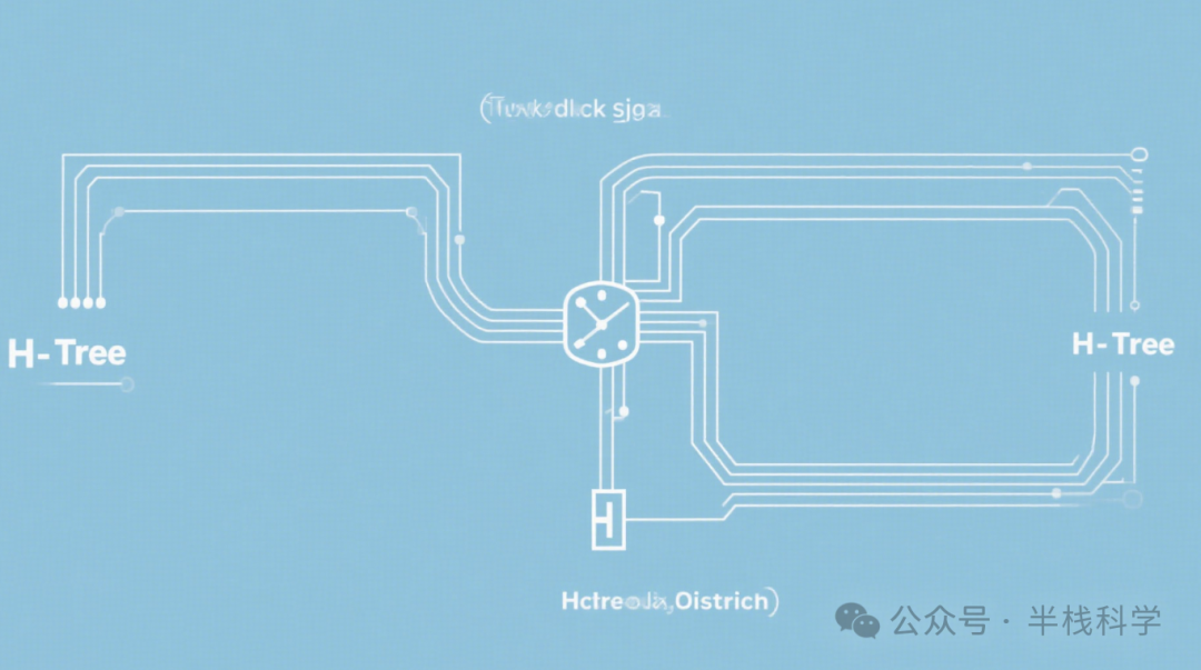 一、二级 H-tree:对称分叉保证时钟延迟对称,减小时钟偏斜(skew)。