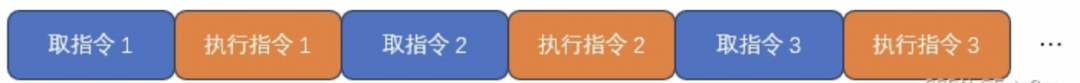 如果只把指令处理过程分成两个阶段:取指令和执行指令,那么没有采用流水线的计算机会串行处理每条指令: