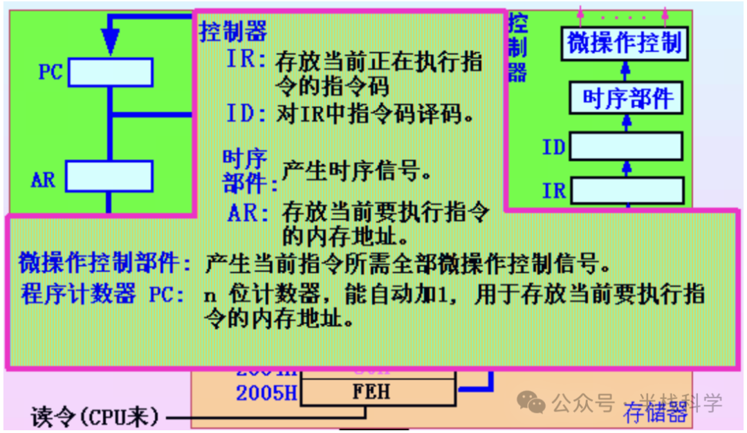 用于从程序存储器中取出指令并进行译码和执行调度,是整个单片机的“大脑”。