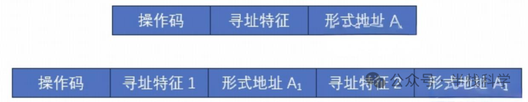 数据寻址方式的种类较多,通常在指令中设一个字段,用来指明属于哪种寻址方式。由此可得指令的格式如下: