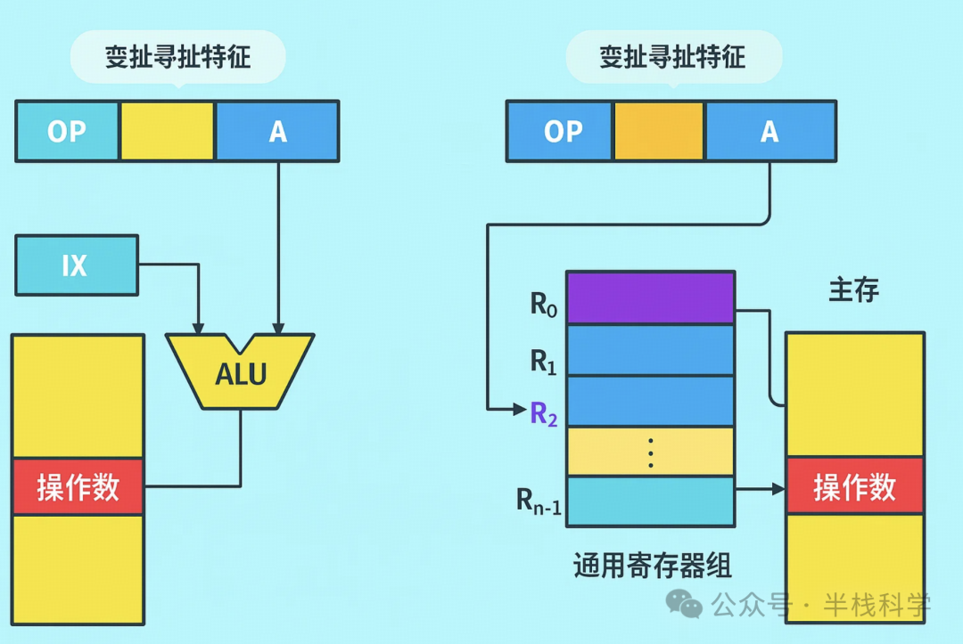 缺点:寄存器数量有限;指令的执行阶段需要访问主存(因为操作数在主存中)。