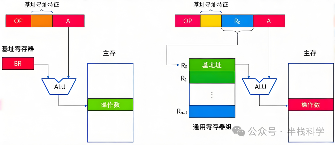 这是隐式基址寄存器;对应地,如果采用通用寄存器,则需要用户明确指出用哪个寄存器作为基址寄存器,这是显式基址寄存器。