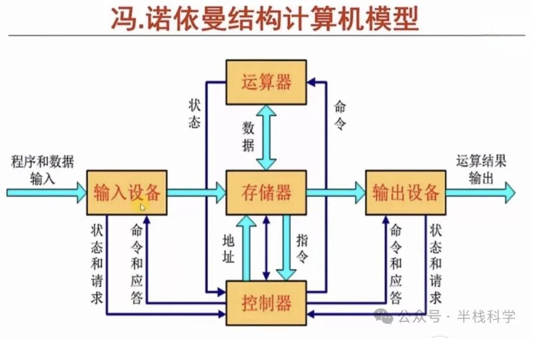 冯·诺依曼的最大贡献之一,是提出了“程序存储”思想——指令和数据一起存储在内存中。这一结构被称为“冯·诺依曼瓶颈”,虽然现在有所改进,但它依然是所有现代计算机的起点。