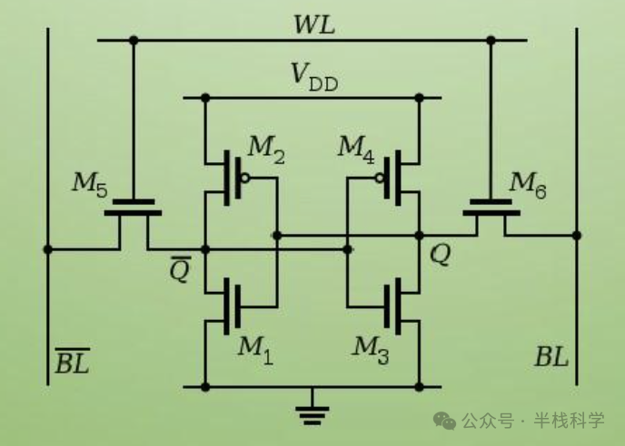 3.M5 和 M6 是两个接入晶体管,在读写时由字线(WL)控制接入。