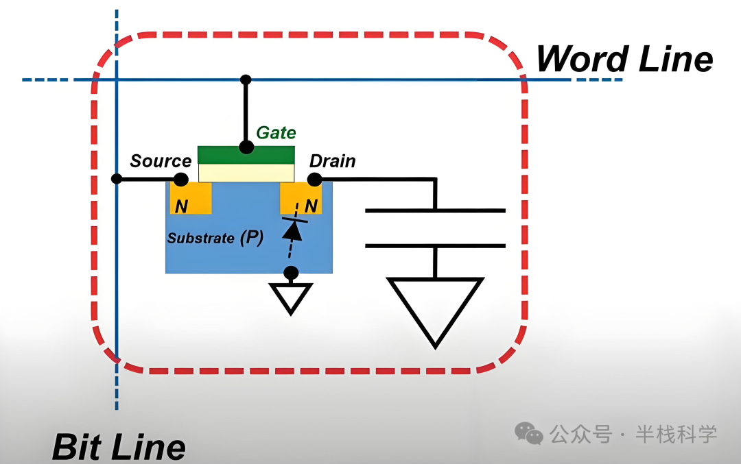 每个bit位由一个电容 + 一个晶体管组成。