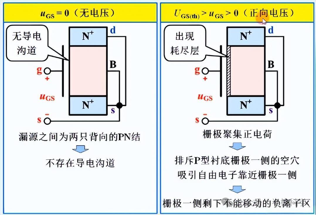 且吸引自由电子靠近栅极一侧。栅极一侧将产生不能移动的负离子区,形成耗尽层