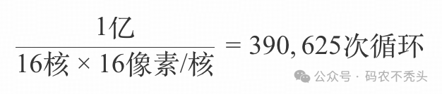 SIMD指令集(如AVX-512):单条指令同时处理多个像素(例如一次处理16个像素) 多核并行:现代CPU通常有4-32个核心,可分割任务到多个核心 CPU以顺序执行为主,但会通过以下方式优化: 例如:若使用16核CPU + AVX-512(16个像素/指令),处理1亿像素的理论最低周期数为: