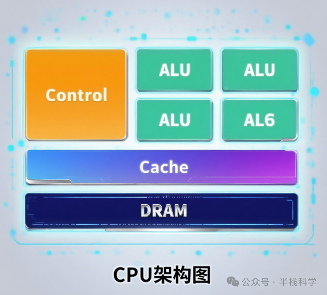 然而,CPU中用于计算的ALU面积占比远低于控制与缓存系统,这导致其在大规模并行运算中能力受限。