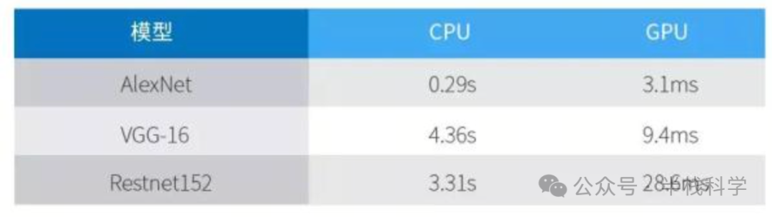 以AlexNet、VGG-16和ResNet152为例,研究表明,在图像分类任务中,GPU的性能远超CPU。