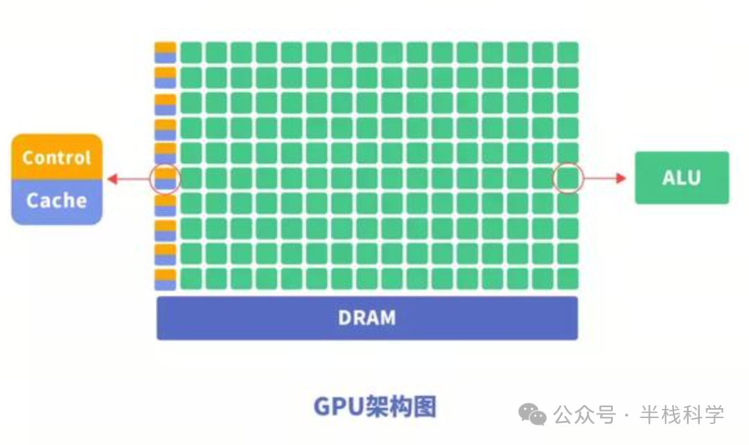 GPU(图形处理器)最初为图像渲染而生,但凭借其成百上千个ALU,成为深度学习领域的中坚力量。与CPU相比,GPU大部分芯片空间被ALU占据,天生适合执行大量的矩阵运算与卷积操作。