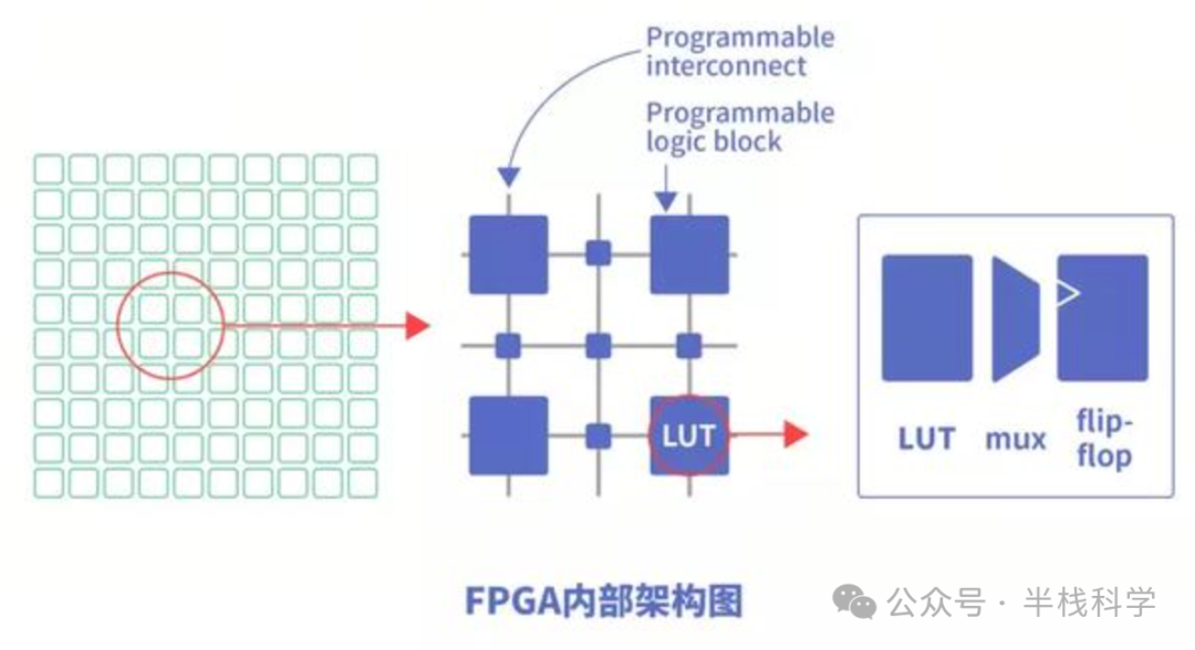 FPGA芯片内部集成大量的查找表(LUT)和触发器等逻辑单元,通过硬件连接形成自定义电路路径。这种架构跳过了传统指令执行路径,可以直接将算法“烧进硬件”,大大提升执行效率。