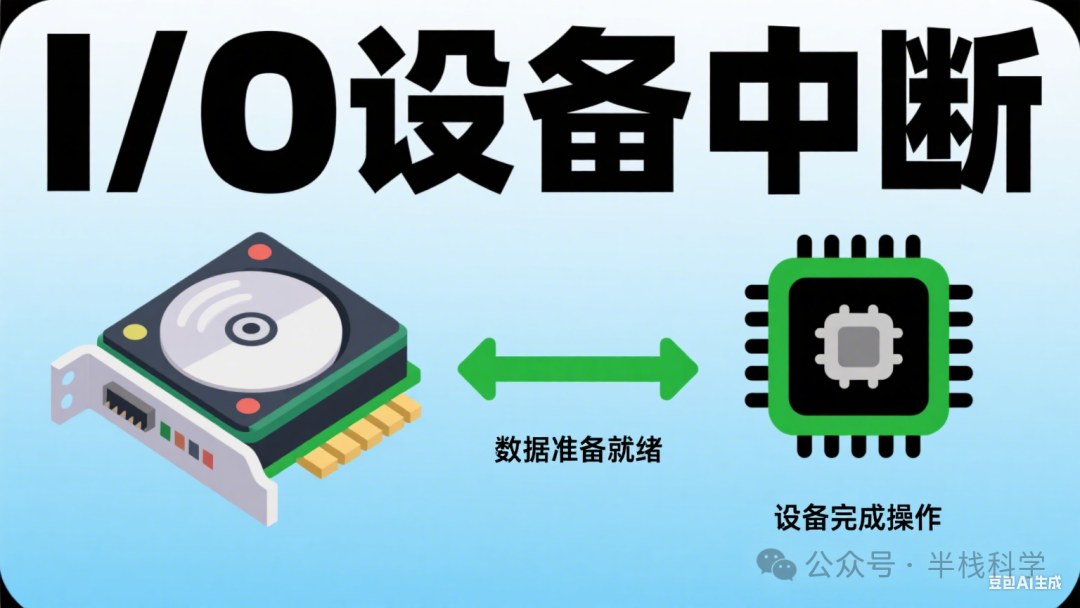 I/O设备:例如磁盘、网络接口等,设备完成操作后会发送中断,告知CPU它已准备好数据,等待进一步处理。