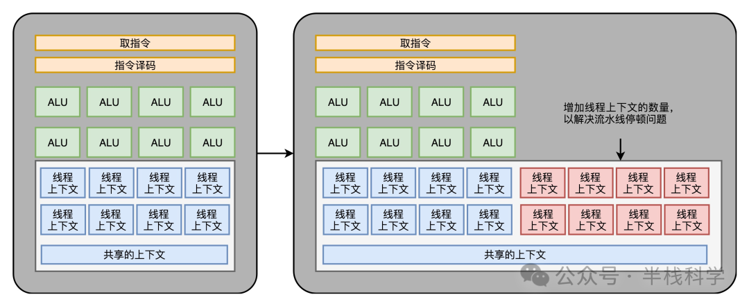 也就是遇到停顿的时候,调度一些别的计算任务给当前的ALU。