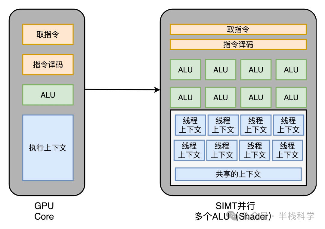 就可以放下更多的ALU,同时进行更多的并行运算了。