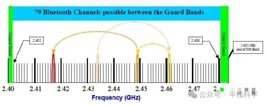 所以,蓝牙的工作频率为[2.4GHz ~ 2.48GHz]。