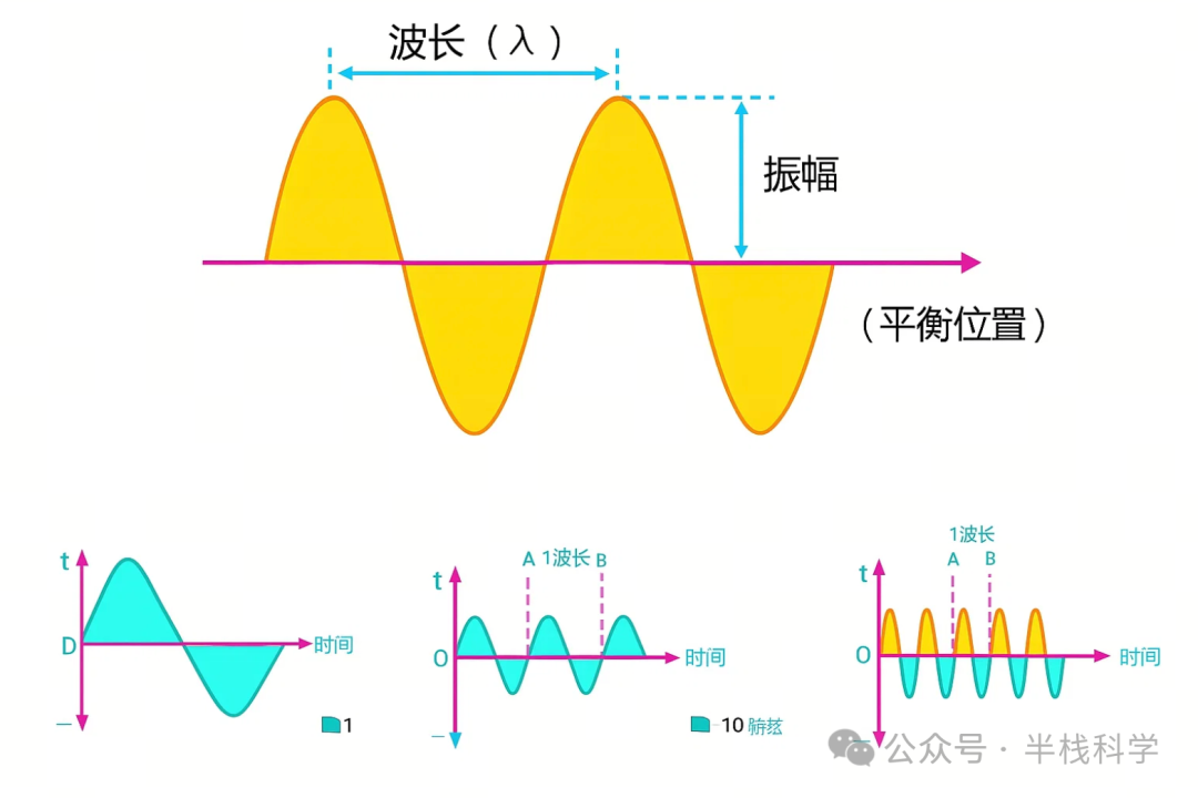 ,我们会发现,波长越长,两个连续的峰或谷之间的距离就越大。反之,波长越短,两个连续的峰或谷之间的距离就越小。