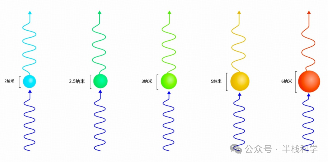 具体颜色取决于量子点的尺寸。在这些显示器中,背光通常是蓝色的,因为蓝光的波长更短、能量更高,然后量子点层会将蓝光重新发射成绿色或红色。