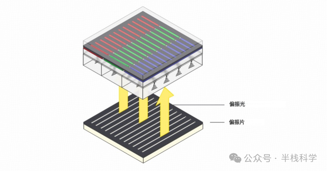 经过彩色滤光片后,任何穿过滤光片的光线都会进入第二个偏振片,该偏振片与第一个偏振片呈90度角。