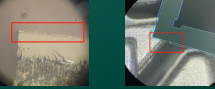 解决思路:优化激光切割参数,降低局部温度;切割后及时清理工件边缘,再进行扩膜和解胶。