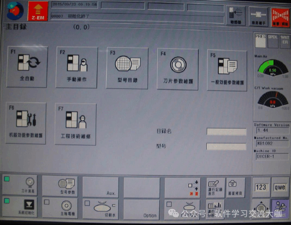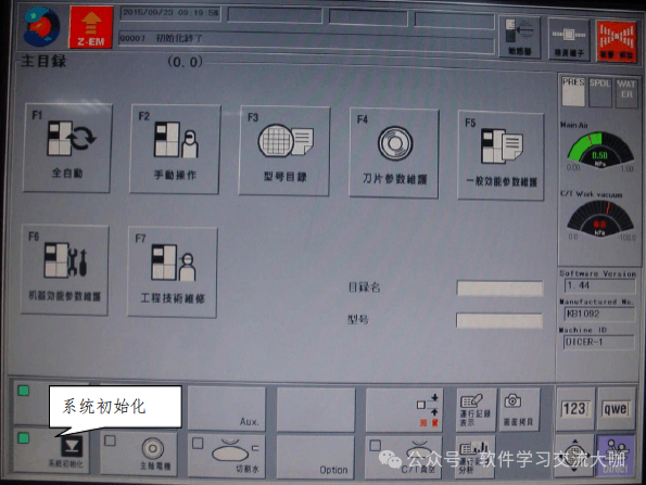刀片预热(WARM UP):15分钟水循环CLEAN完成后,在0.0界面点击“主轴电机”开启,等转速达到30000r/min后,再开“切割水”,