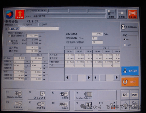 编辑切割参数(重点!):在3.1.2界面设置关键参数,每个参数设完后点击ENTER保存,其余参数别乱改(易导致碎刀):