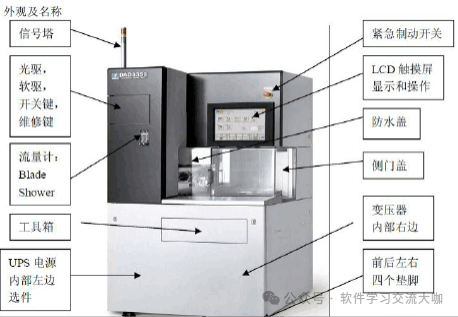 必认核心部件:信号塔、紧急制动开关(EMO,紧急情况必用)、LCD触摸屏(操作核心)、冷却水/压缩空气开关、流量计、样品腔门等,位置记熟,操作时不用反复找。