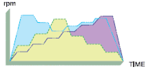 旋转速度、时间、加速度和减速度被视为一个步骤,最多可以组合 6 个步骤进行操作和存储。